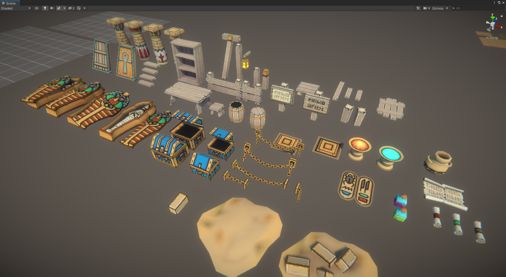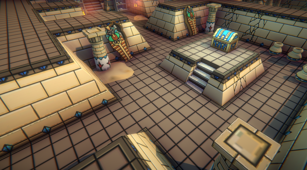 On this impressive asset package you will find a extensive kit of high quality modular meshes ready to create awesome and charmfull “top-down” egyptian shrines and pyramid dungeons.