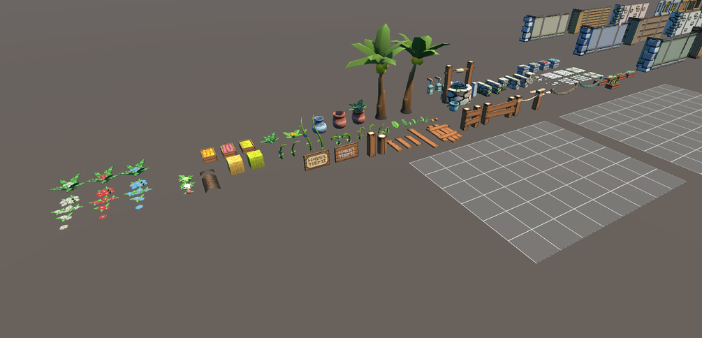 The pack includes a “Tile-based placement tool” that will help you placing and editing all your assets on a grid based layout.